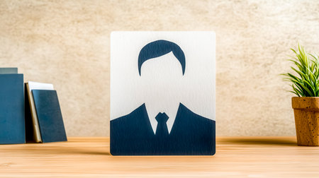 Stylized image featuring a faceless businessman icon placed on a wooden desk, symbolizing anonymity, data privacy, and the impersonal nature of corporate environments