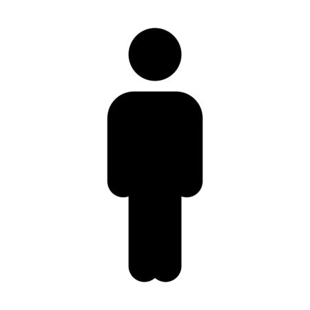 Icon showing black silhouette of a person icon on white background. High resolution image suitable for commercial use.