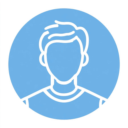 A simplistic avatar depicting a young man's face and upper body. The design features clean white outlines against a vibrant sky blue circular backdrop, offering a modern and minimalist aesthetic suitable for various digital platforms.