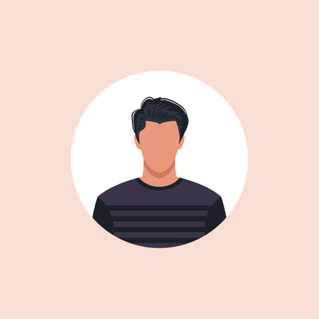 Linear vector avatar of hipster guy in shirt in a circle. Character design