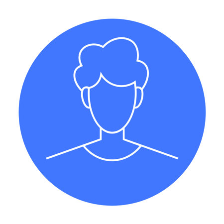 Simple line drawing of a person s head and shoulders within a solid blue circle. Ideal for avatars, profiles, user icons, social media, websites, and mobile apps.