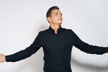 Man in black shirt lifestyle emotions modern style cropped view light background