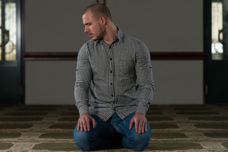 Muslim Man is Praying in the Mosque
