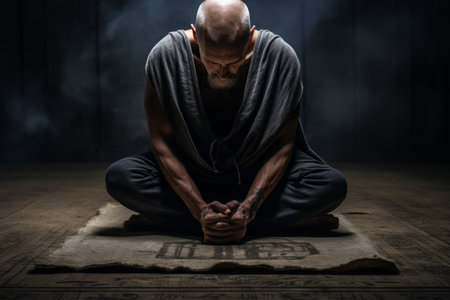 Captivating Image: The Serene Artistry of a Man Kneeling on a Mat