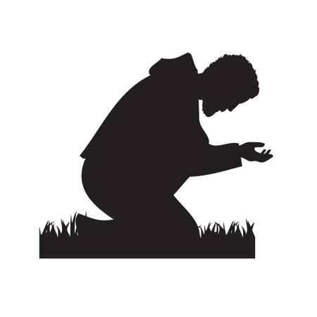Silhouette of a man in a pose of repentance. Vector illustration.