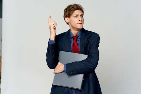 Caucasian stylish business man working with laptop