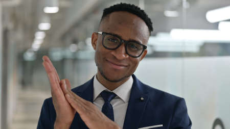Portrait of Excited Young African Businessman Clapping