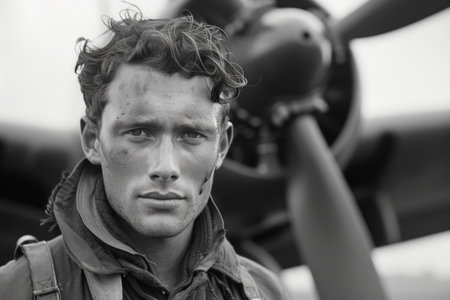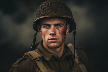 An emotional photo of a soldier from the Second Great War: a tragic wartime experience, a compelling portrait reflecting the depth of suffering and heroism in the struggle for freedom