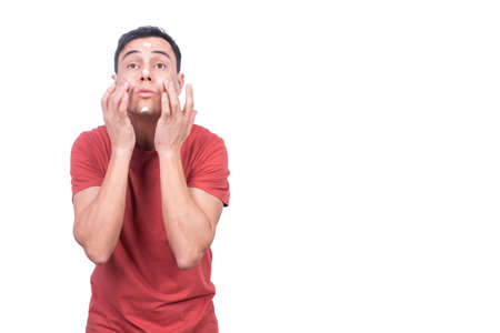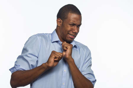 Frightened man. Emotion of fear. Scared screaming male, threaten concept