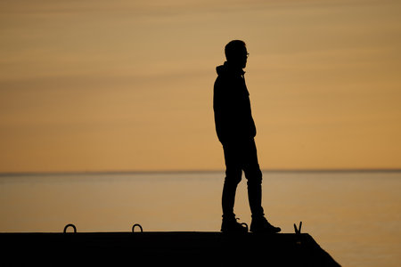 Silhouette of a young man on the background of the sea