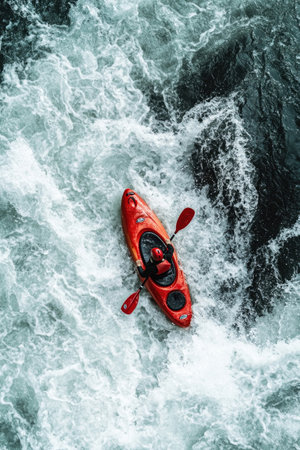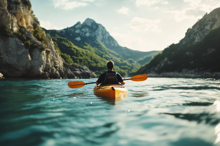 Adventurous kayaker navigating a mountain river embracing the thrill of extreme sports