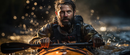 Euphoric Adventurer Embarks on a Kayak Journey. Generative AI