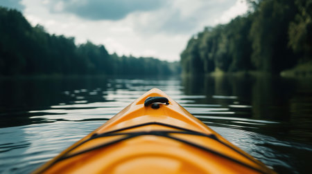 photo of a river kayaking scene, the kayak gently gliding across crystal clear water with subtle ripples, minimalistic background of distant trees and a cloudy sky, professional photo, photorealistic --chaos 10 --ar 16:9 --v 6.1 Job ID: 98e7b8da-3b42-4a9e-ac6f-7180db95c986