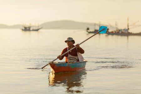 Chumphon,Thailand; December 27 2019 : A man was rowing a boat in the sea