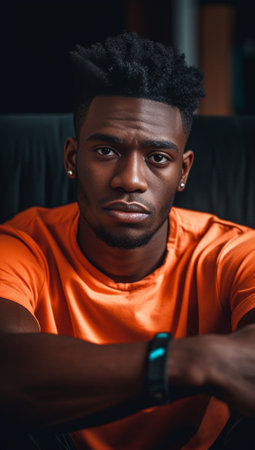 Many things to think about Handsome young African man touching head with hand and looking uncertain while sitting on the sofa at home : Generative AI