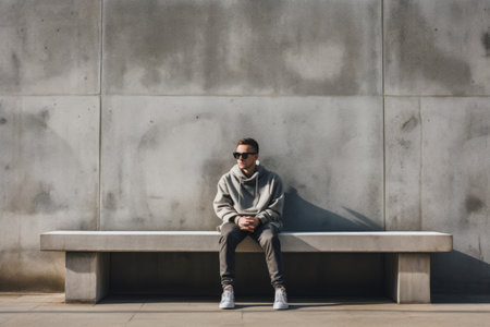Solitude in the Urban Landscape: A Contemplative Man Sitting on a Concrete Bench