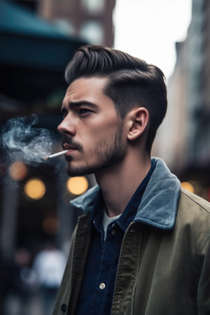 cropped shot of a handsome young man smoking in the city, created with generative ai
