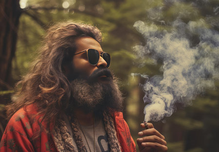 A man with a beard smokes