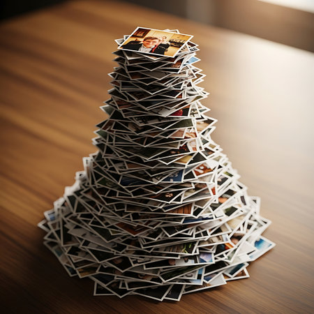 Pile of Old Photographs on Table, Vintage Memories and Nostalgia