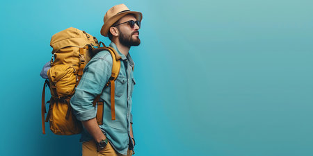 Travel Man with Backpack on solid background, World Tourism Day - Ai Generated