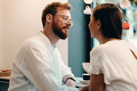 Young Couple Sitting Together Inside a Cozy Cafe During the Afternoon