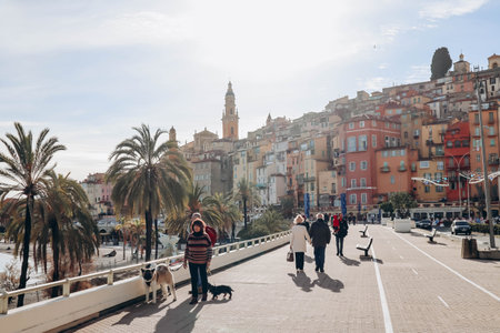Menton, France - 6 January, 2024: Lovely town center in Menton, south of France