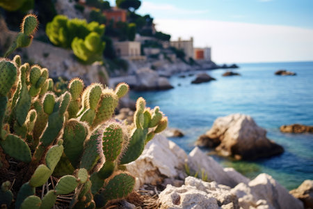 Cactus plants, succulent outdoors on the Mediterranean coast. Generative AI