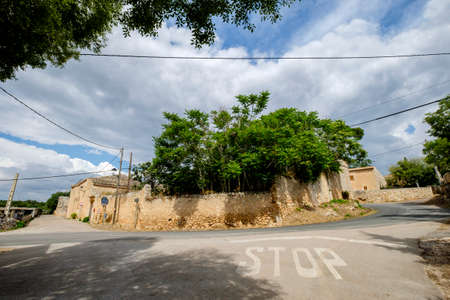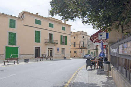 SES SALINES, MALLORCA, SPAIN - APRIL 15, 2019: Street view in central village on an overcast day in the beginning of tourist season.