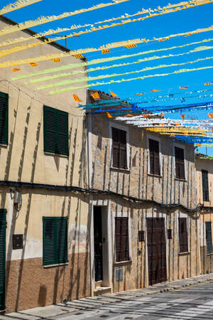 Colorful Festive Bunting across Street In Spanish Village