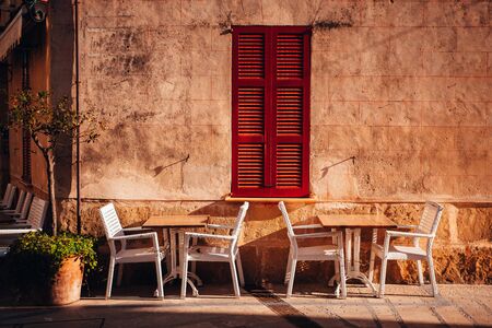 Summer vacation, holiday photo. Chairs on the Mediterranean street.