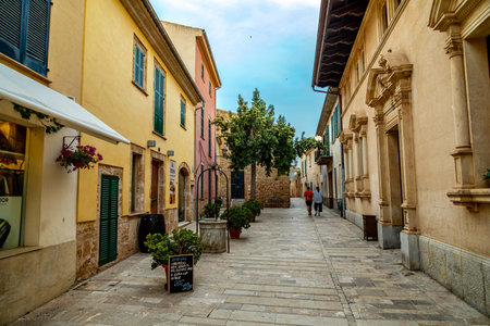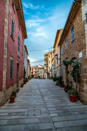 Historic old town of Alcudia, idyllic narrow streets, Mallorca Spain