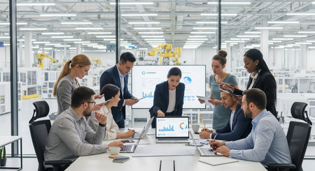 Group of business people discussing business plan at meeting room in modern office.