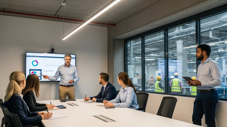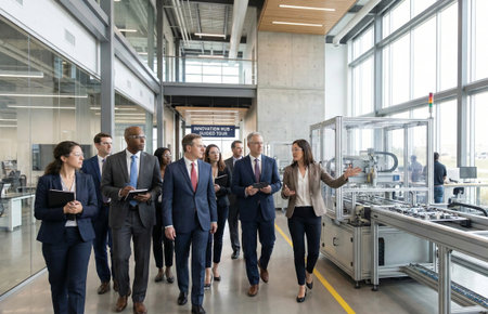 Diverse Business Delegation Touring a Modern High-Tech Factory