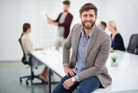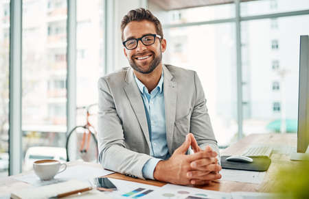 Its been a successful workday. Portrait of a handsome young businessman sitting in an office.