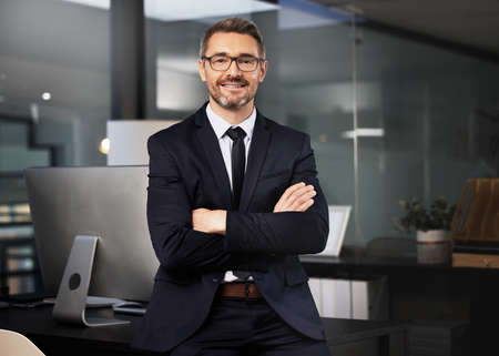We dont make promises we cant keep. Portrait of a businessman standing with his arms crossed in his office.