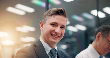 Happy, confident and portrait of businessman in office in meeting for company profit discussion. Smile, pride and male financial advisor in conversation for revenue forecasting or planning in Japan.