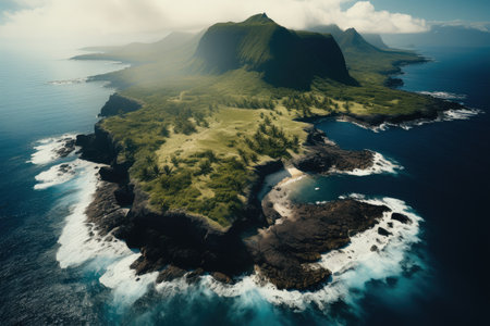 Aerial view of the tropical island of Mauritius, Africa.