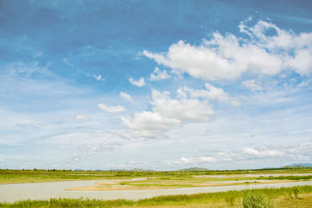 Landscape scenery view of a plateau under the blue sky with white clouds