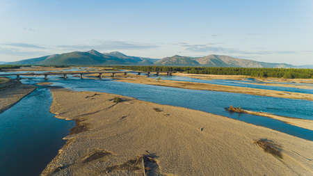 Mountain River Valley Amgun. Khabarovsk Krai in the Russian Far East. Amgun river views of the beautiful.