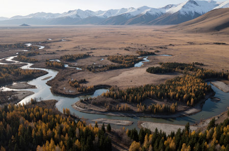 Winding rivers and meadows. Shot in xinjiang, China.