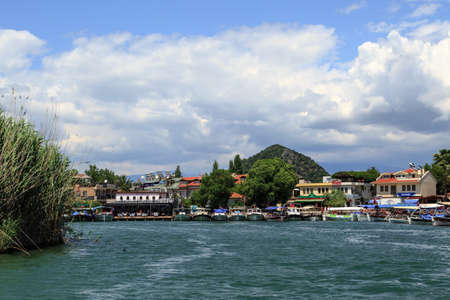 June 21, 2021 Dalyan.Turkey.View of the canal and boats in Dalyan.
