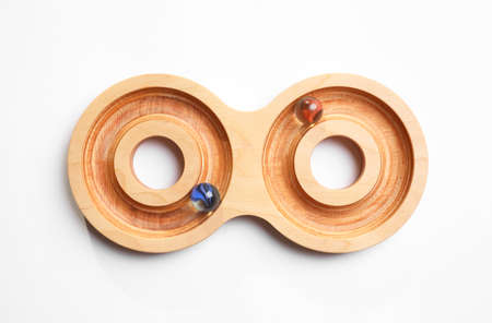 Labyrinth balance board isolated on white, top view. Montessori toy