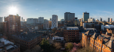 Aerial View of Manchester City Center with Skyscrapers and Brick Buildings