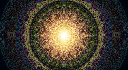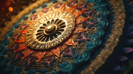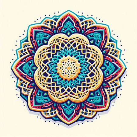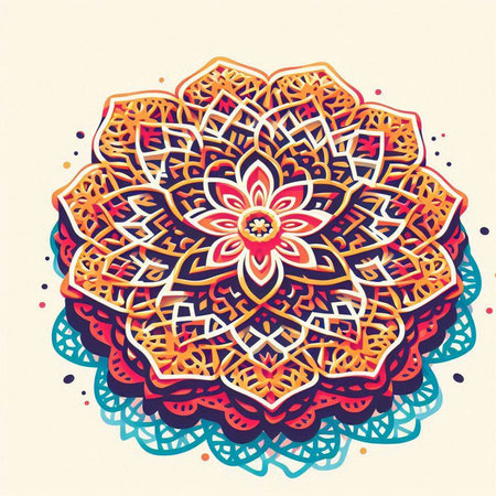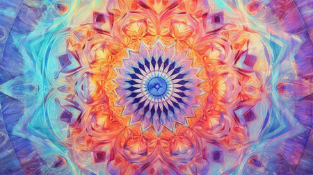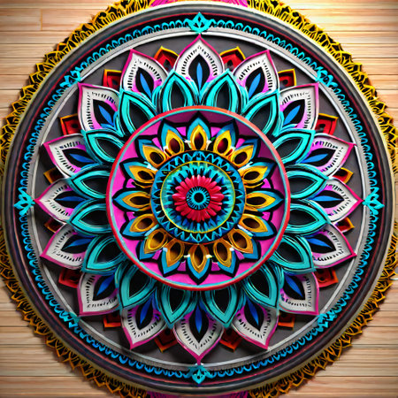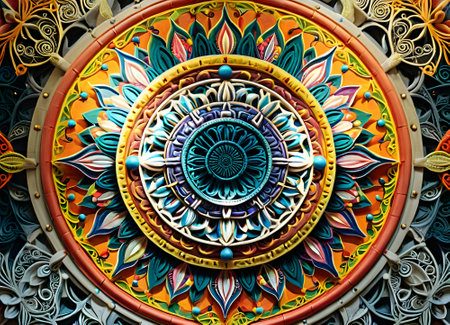 A vibrant, three-dimensional mandala with intricate patterns and bold colors, a beautiful piece of spiritual art.