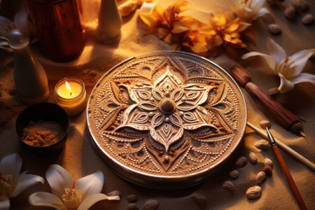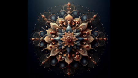 Ornate floral mandala symbolizes East Asian elegance generated by artificial intelligence