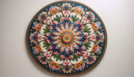 Colorful mandala art showcases elaborate patterns and vivid hues, emphasizing creativity and craftsmanship.