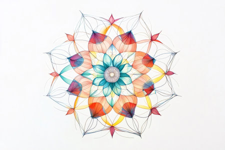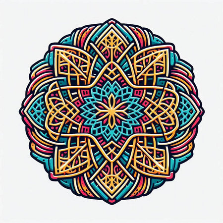 Minimalist mandala with geometric shapes creating a colorful and harmonious design, ideal for meditation and relaxation