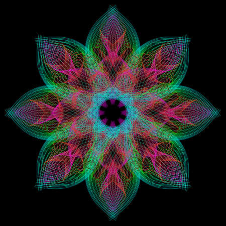 Blossom in rainbow color on spirograph style. Abstract bloom background for design.