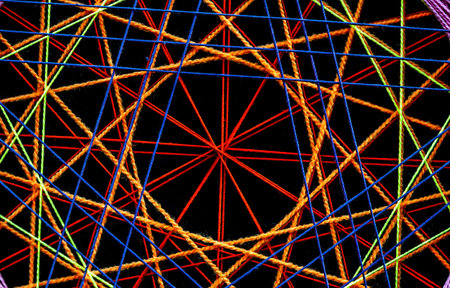 Abstract pattern of bright multicolored threads on a black background with 3D effect