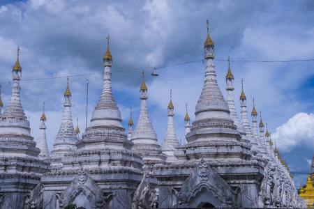 Clouds on the sky and white stupa, Sagaing Hill, Mandalay, Myanmar